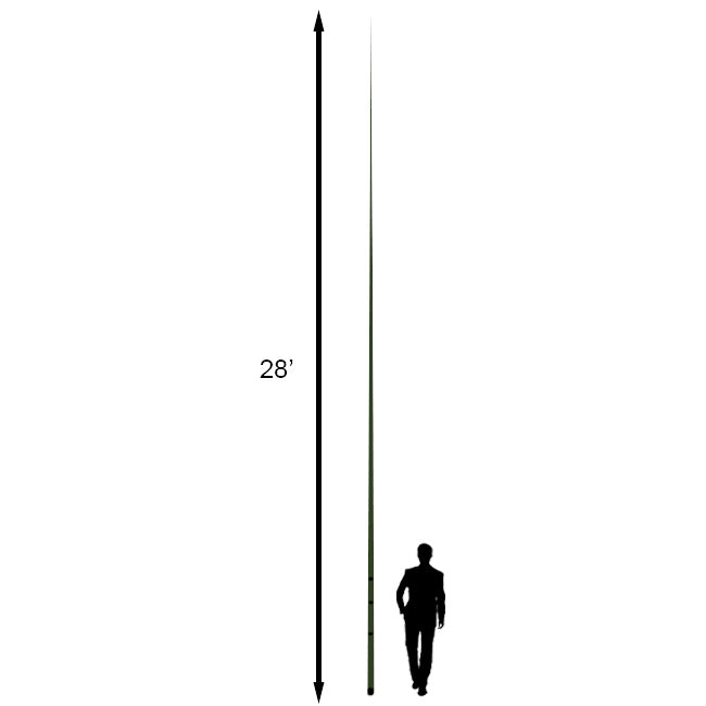 Dimensions: 1.875" base dia. x 28'H Fiberglass Telescoping Kite Pole