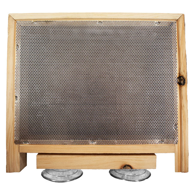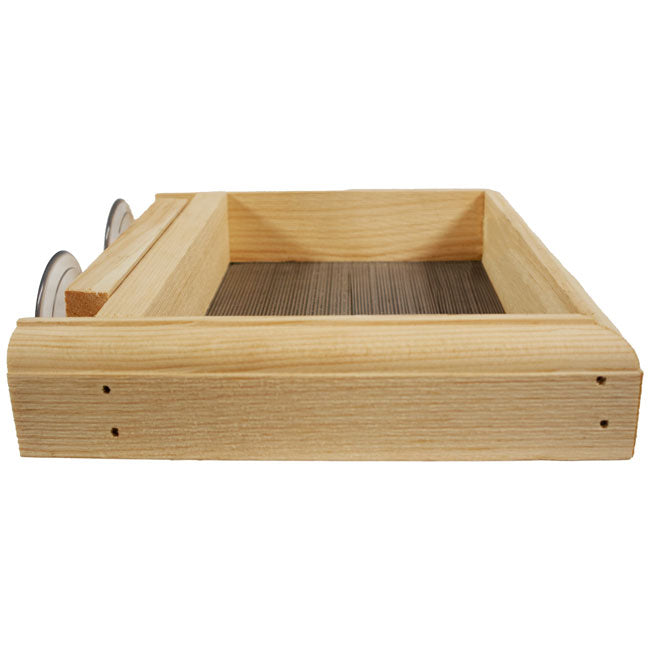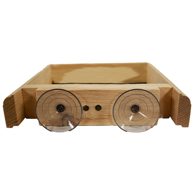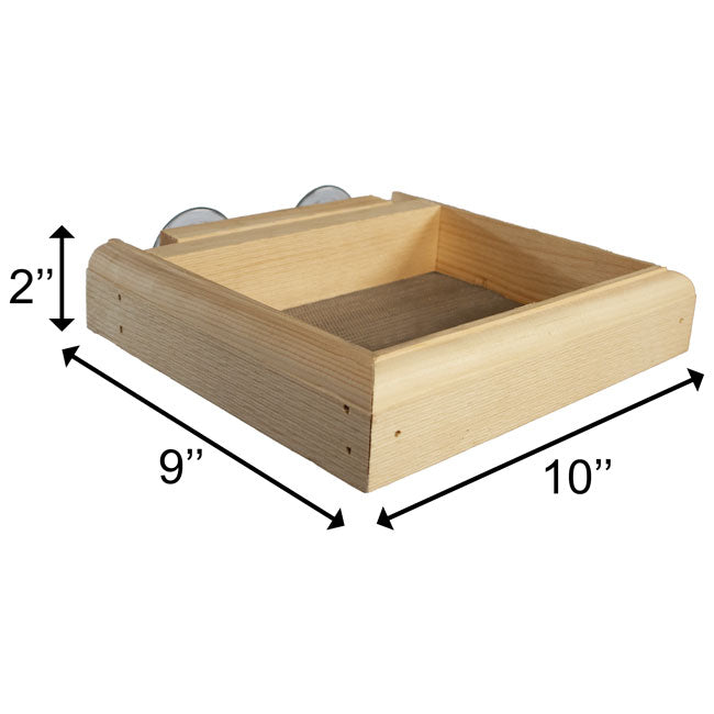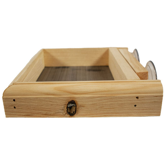 - Classic, pine frame with metal screen base forms a traditional feeder.