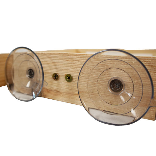 - Dual suction cups on the back bar make for quick placement against a window.